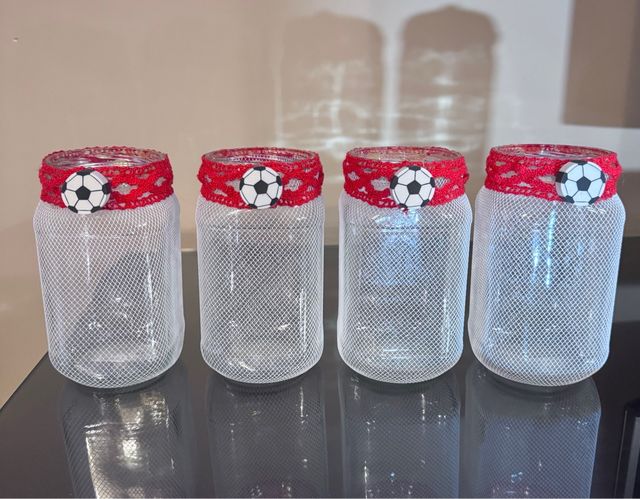 Detalles del productoLote 4 botes de decoracion con balon de futbol para comuniones, bautizos etc... en buen estado