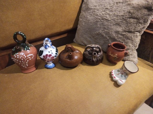 Detalles del productoOFERTA Lote de 4 botijos cerámica originales de 18-15-11-9 cm , están nuevos, aunque tienen años, más regalo de una orza miel de 10 cm, y un nacerito de cerámica en forma de pie de 7 cm alto, se vende el lote junto x 10€