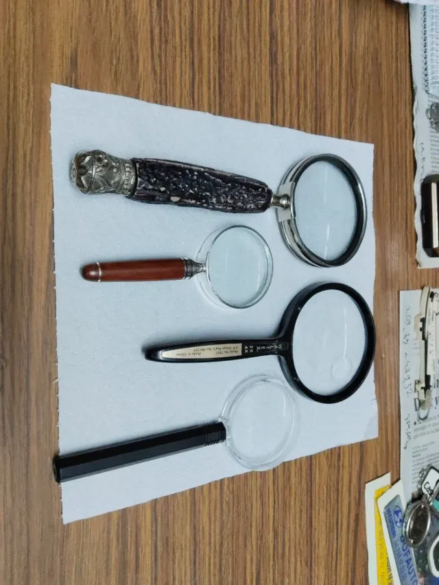 Detalles del productoConjunto de cuatro lupas con diseños variados, algunas con un aire antiguo y otras de estilo vintage.