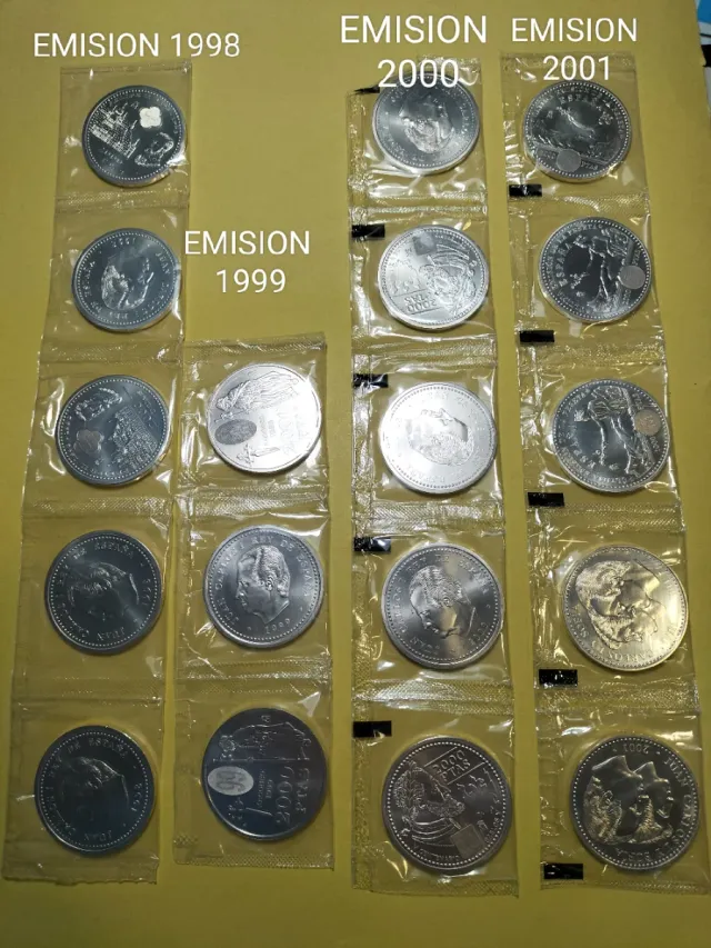 Conjunto de 18 monedas de 2000 pesetas, acuñadas en plata. - Monedas de plata. - Valor nominal de 2000 pesetas. - Incluye emisiones de 1998, 1999, 2000 y 2001.