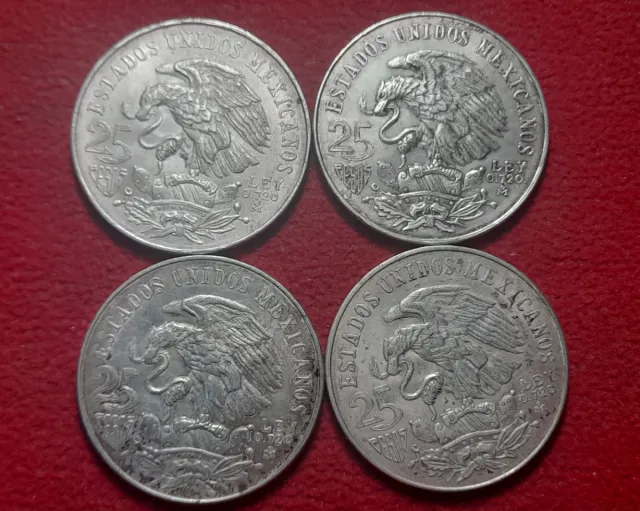 Lote 4 Monedas Plata Mexicanas 25 Pesos