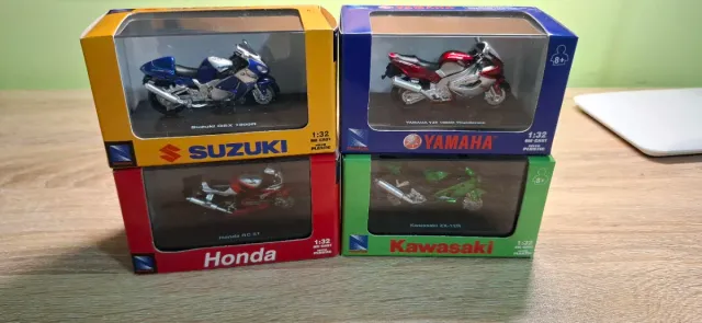 Lote 4 Motos Colección 1:32 Honda Kawasaki Suzuki