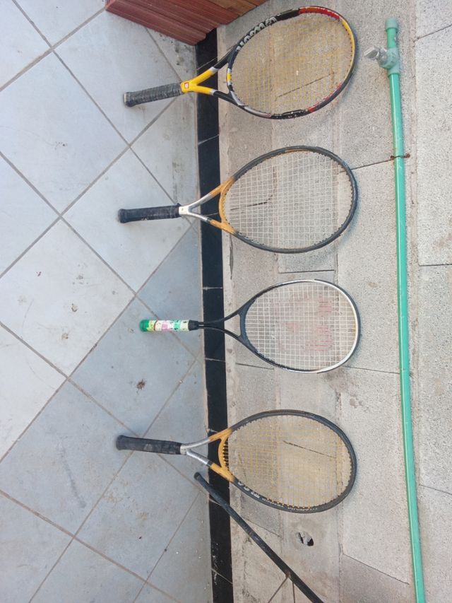 Se venden cuatro raquetas de tenis. - Incluye una raqueta Wilson. - Incluye una raqueta Head. - Incluye dos raquetas sin marca visible.