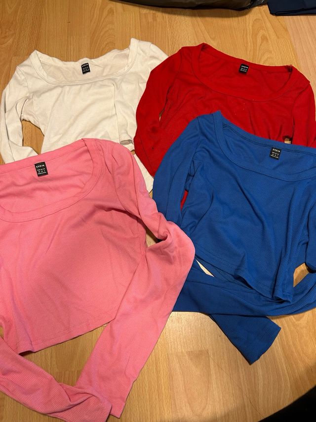 Lote 4 Tops Manga Larga Escote Cuadrado