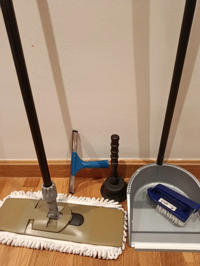 Mopa, recogedor, cepillo, limpiacristales, desatascador