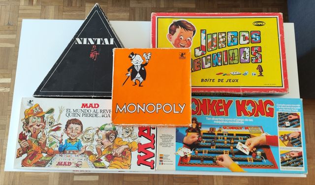 Detalles del productoConjunto de 5 juegos de mesa clásicos antiguos. Todos en muy buenas condiciones y con instrucciones. Tienen todo el contenido, las cajas estan algo deterioradas por el tiempo.