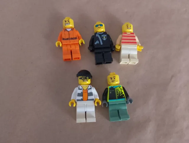 Conjunto de cinco minifiguras originales de Lego. - Incluye figuras variadas. - Piezas de colección.