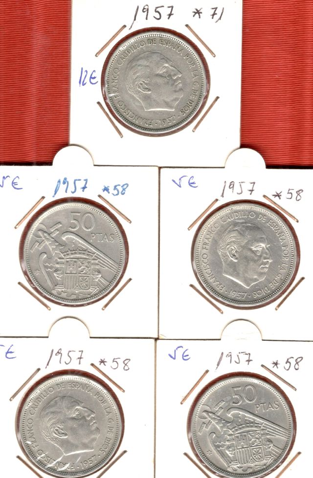 Lote 5 Monedas 1957 Franco* 58 y 71