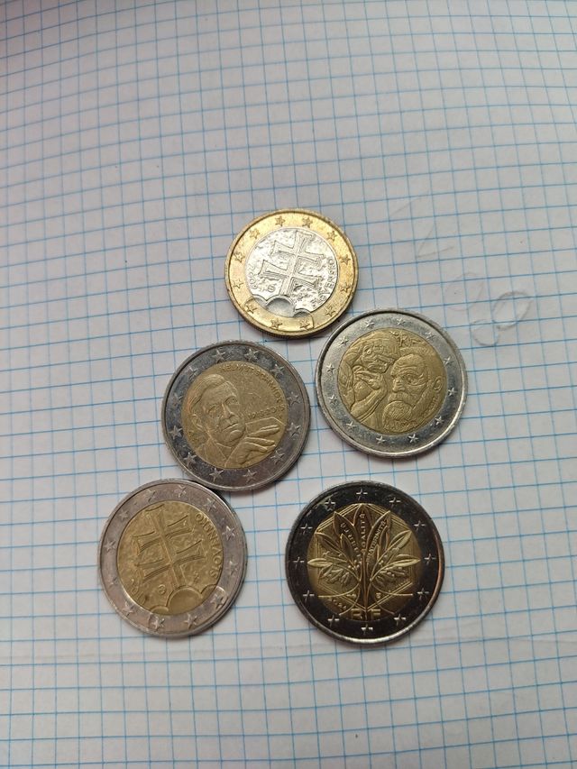 Detalles del productoConjunto de cinco monedas de 2 euros.