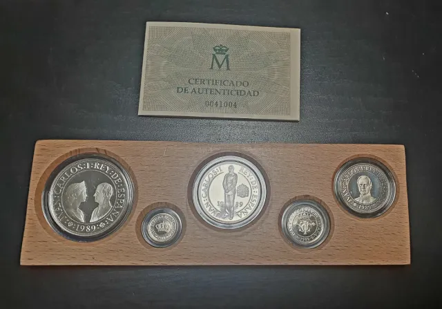 Colección 5 valores plata - FDC MATE 2.000_1.000_500_200_100 pesetas Incluye certificado de autenticidad.