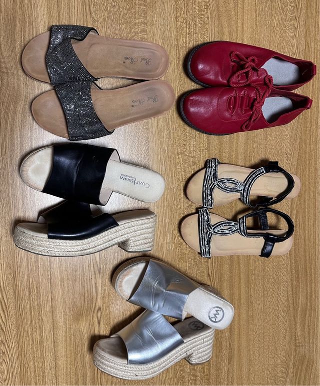 Lote 5 pares zapatos y sandalias mujer talle 39
