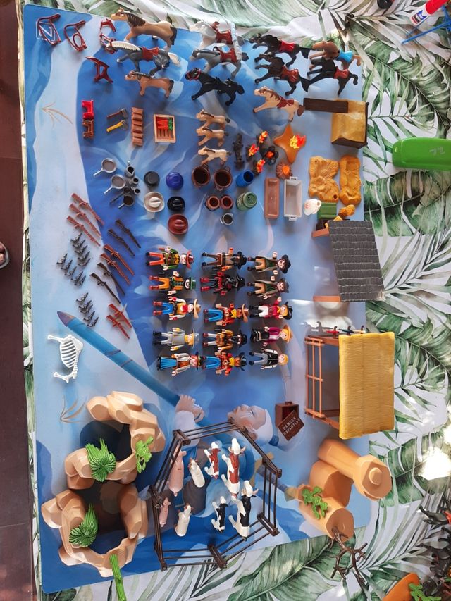 Detalles del productocompleta tu Colección del Oeste. lote de accesorios western/granja. 15 muñecos, caballos de distintas generaciones, rocas, animales, establos y muuuuchas armas. No envíos, entrega en mano Alcobendas o Algete.