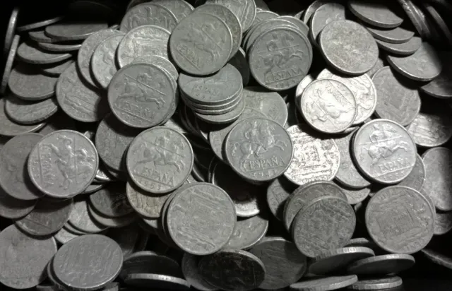 Detalles del productoConjunto de monedas de 5 y 10 céntimos de España con la imagen del jinete lancero, de la época del Estado Español, Francisco Franco.