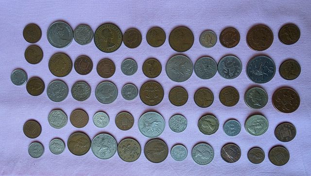 Detalles del productoLote variado de 56 monedas antiguas del Reino Unido, todas originales y en diferentes estados de conservación.