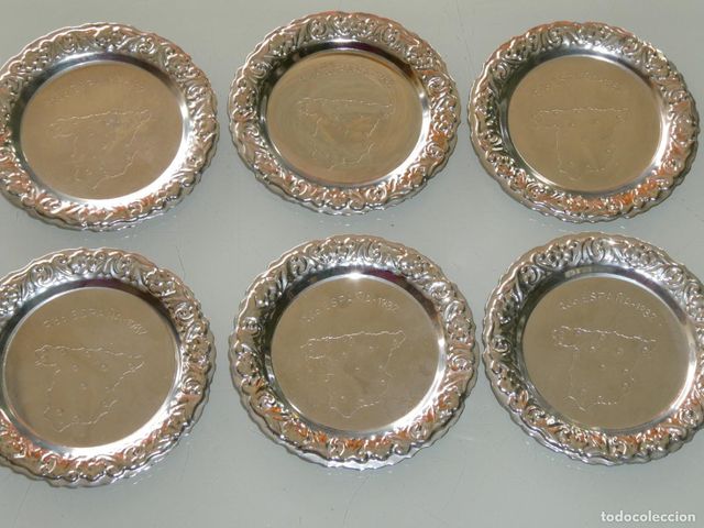 LOTE 6 BANDEJAS CENICEROS DE METAL. SEDES MUNDIAL COPA MUNDO FÚTBOL ESPAÑA 82 1982. 10CM 220GR