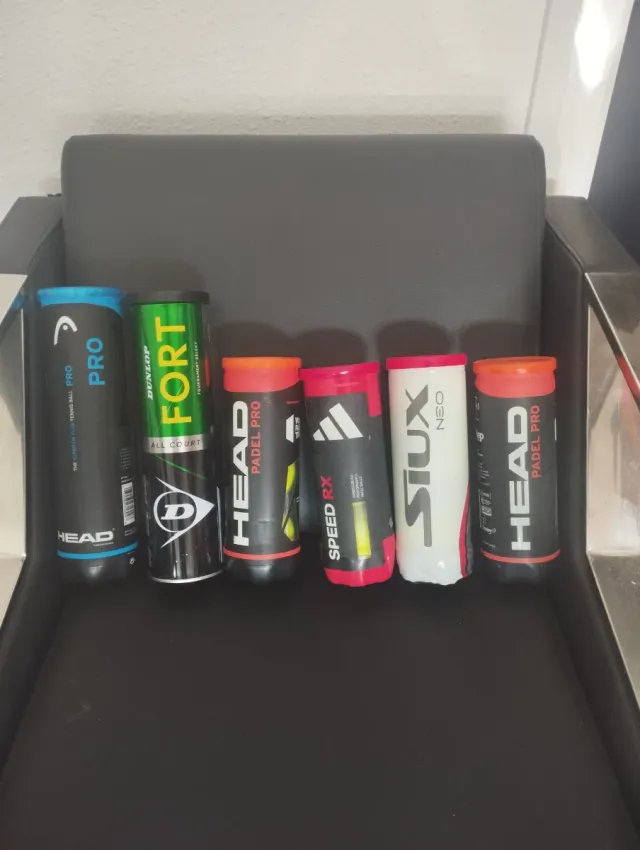 Detalles del productoSe vende lote de 6 botes de pelotas de tenis y pádel, todos nuevos.