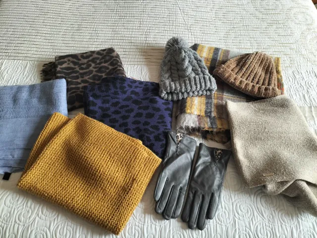 Lote 6 bufandas, 2 gorros y guantes sin estrenar .