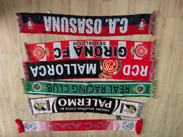 Lote 6 bufandas fútbol C.A. Osasuna, Girona, Ajax.
