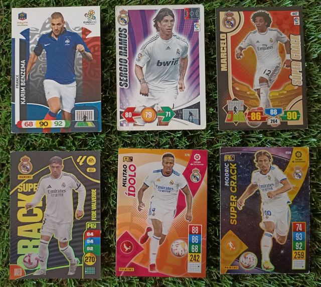 Detalles del productoVendo cromos de fútbol Adrenalyn XL en buen estado. Son un total de 6 cromos, incluyendo jugadores como Karim Benzema y Marcelo. Algunos cromos son de la liga española y otros del Euro 2012. Perfectos para coleccionistas. - Incluye 6 cromos de diferentes jugadores y ligas. - Cromos en buen estado. - Ideal para coleccionistas.
