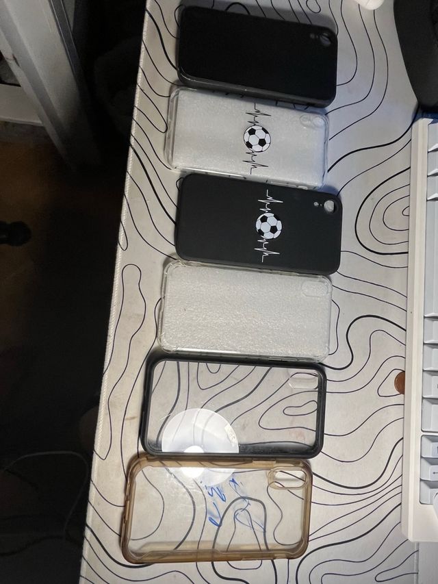 Detalles del productoLote de seis fundas para iPhone XR. Incluye fundas transparentes y negras, algunas con diseño de balón de fútbol.
