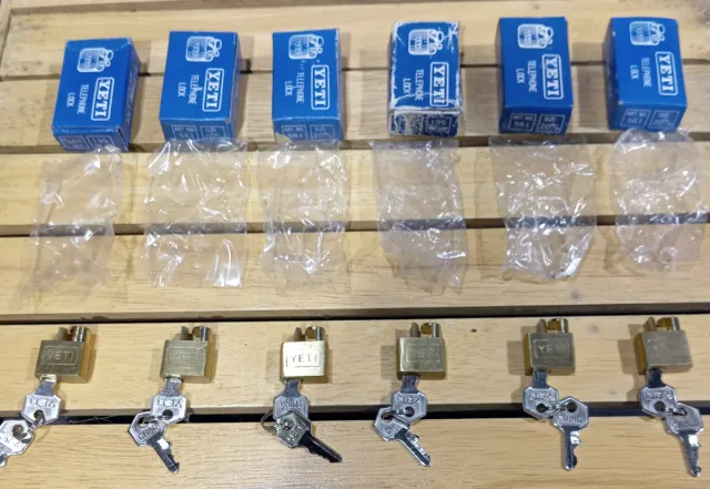 Detalles del productoSe venden 6 candados YETI de latón para teléfonos antiguos de baquelita para bloquear la ruleta del dial,cada uno con su llave.