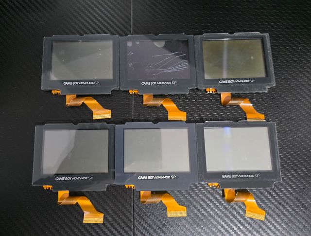 Detalles del productoLote de 6 pantallas para gameboy advance sp, todas encienden, una está rota como puede verse en la imagen y las demas tiene manchas o polvo.