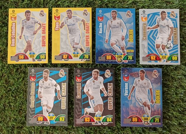 Detalles del productoSe vende lote de 7 cromos del Real Madrid Adrenalyn XL 2017/18. Los cromos son SUPER DRAFT, IDOLOS, IRONMAN y SUPER CRACK.