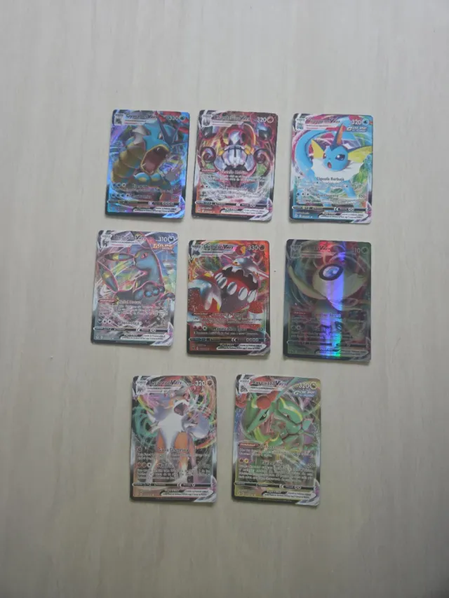 Pequeño lote de 8 cartas Pokémon Vmax. - Gyarados Vmax - Coalossal Vmax - Vaporeon Vmax - Umbreon Vmax - Hextran Vmax - Lycanroc Vmax - Rayquaza Vmax