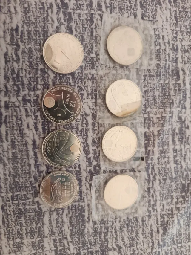 Detalles del productoConjunto de cuatro monedas de plata conmemorativas de España.