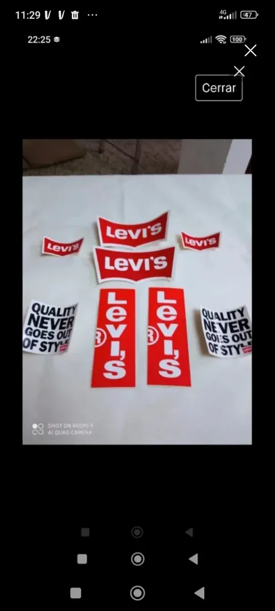 Conjunto de 8 pegatinas de la marca Levis. - Incluye varios diseños del logo. - Diseños con el texto Quality Never Goes Out Of Style.