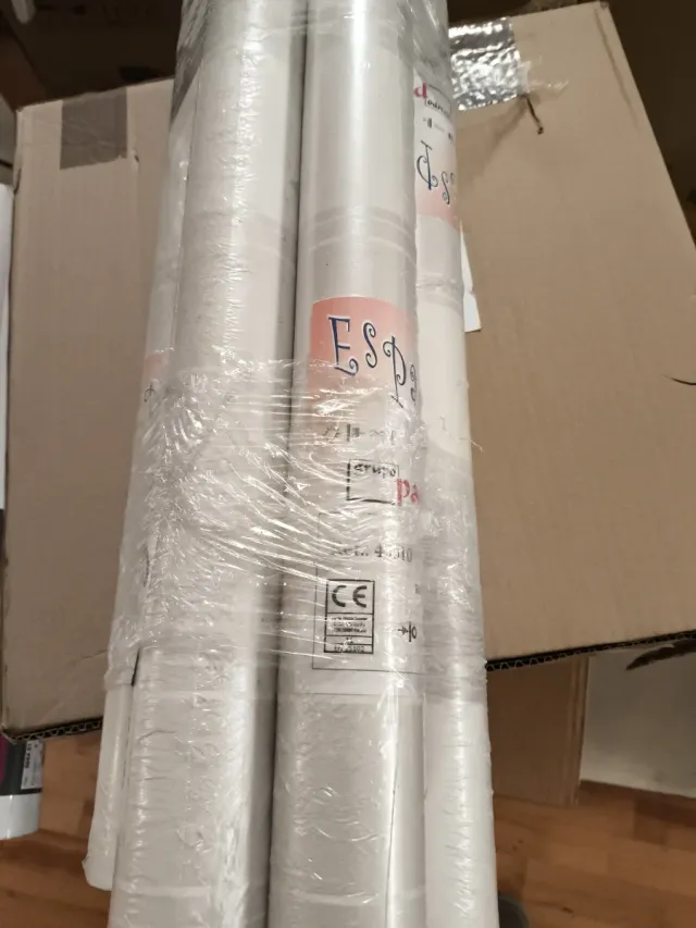 Se vende lote de 8 rollos de papel pintado con diseño de rayas en tonos crema. - Diseño: Rayas - Color: Crema - Cantidad: 8 rollos
