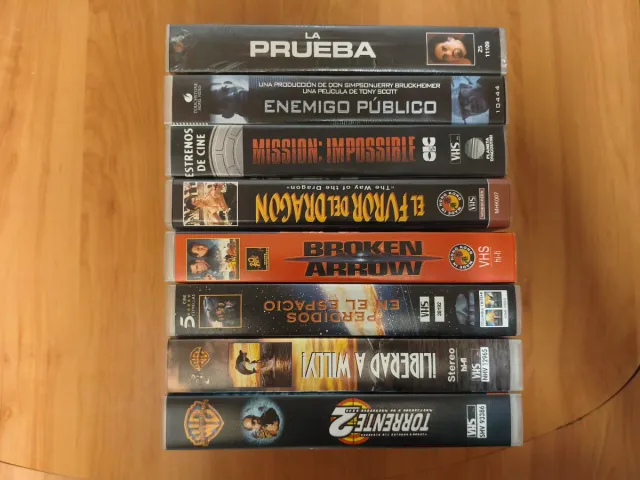 Colección de 8 cintas VHS con películas de acción, crimen y suspense. Para coleccionistas.