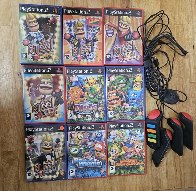 Lote 9 Juegos Buzz de PS2 + Mandos