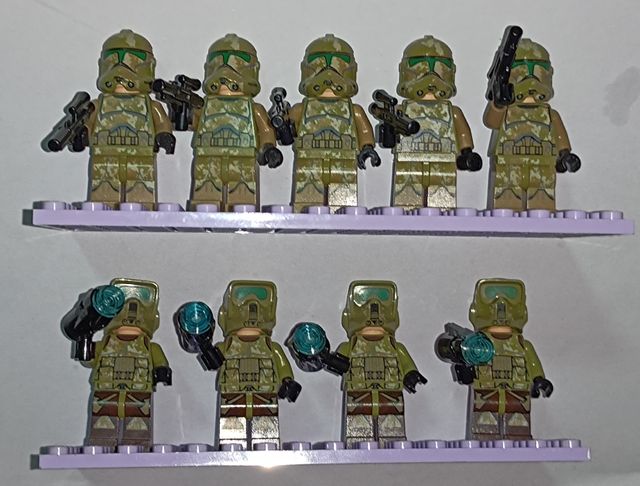 Detalles del productoLote de 9 minifiguras LEGO Star Wars modelos SW0518 y SW0519 41st Elite Corps (Clone Scout Trooper y Clone Trooper) del set 75035 de 2014 bastante bien cuidados para sus años con alguna marca de uso y del tiempo con sus armas.