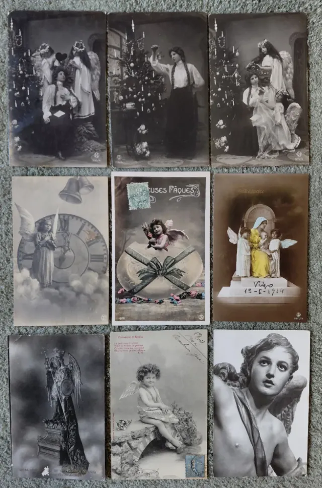 Conjunto de 9 postales antiguas ideales para coleccionistas.
