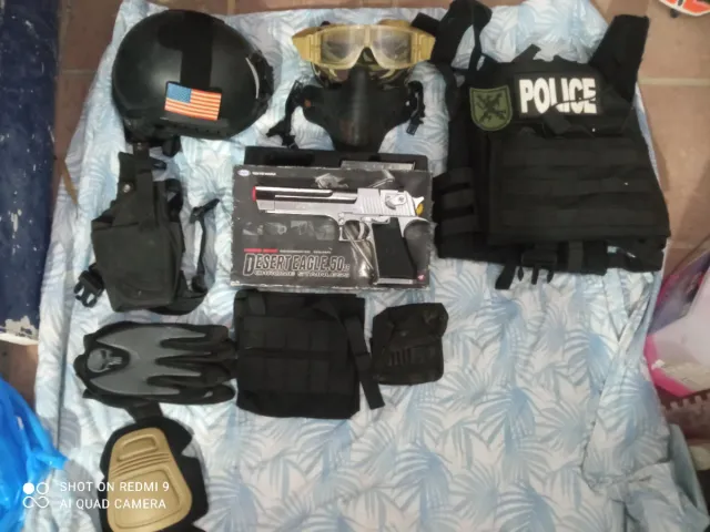 Lote Airsoft: Chaleco, desert eagle, Casco