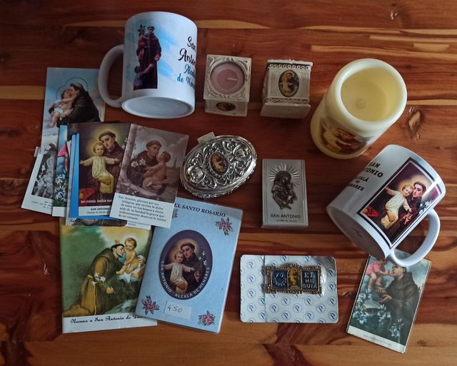 Detalles del productoConjunto de artículos religiosos dedicados a San Antonio de Padua.