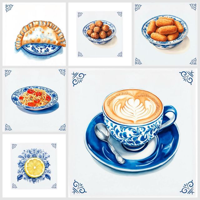 Detalles del productoConjunto de azulejos decorativos con diseño de cerámica azul y blanco.