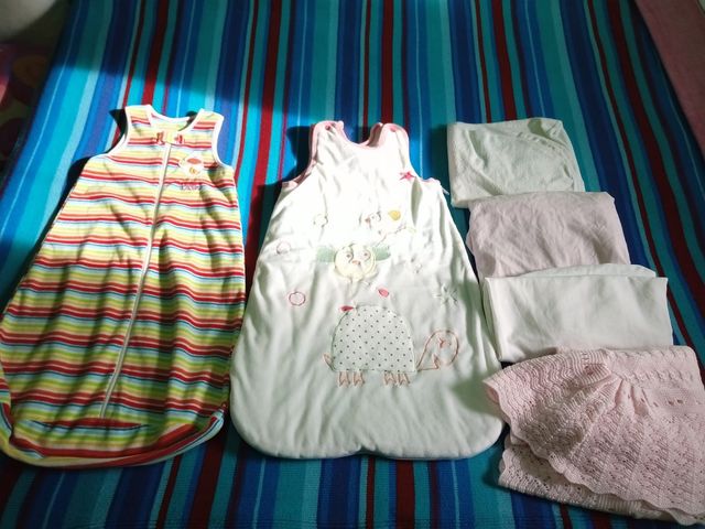 Detalles del productoSacos dormir ideales para que el bebé duerma calentito,funda protectora colchón de cuna,toquilla y dos pijamas 25€