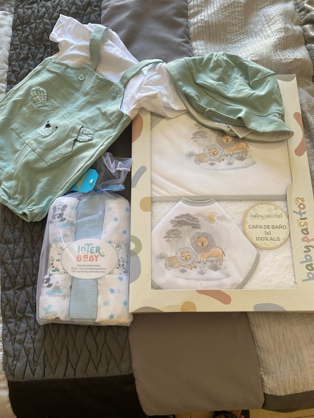 Lote bebe: toalla, babero, gasas y conjunto mayora