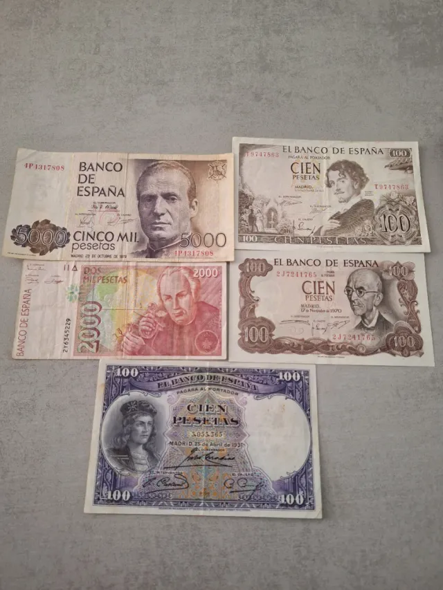 - Un billete de 5000 pesetas.