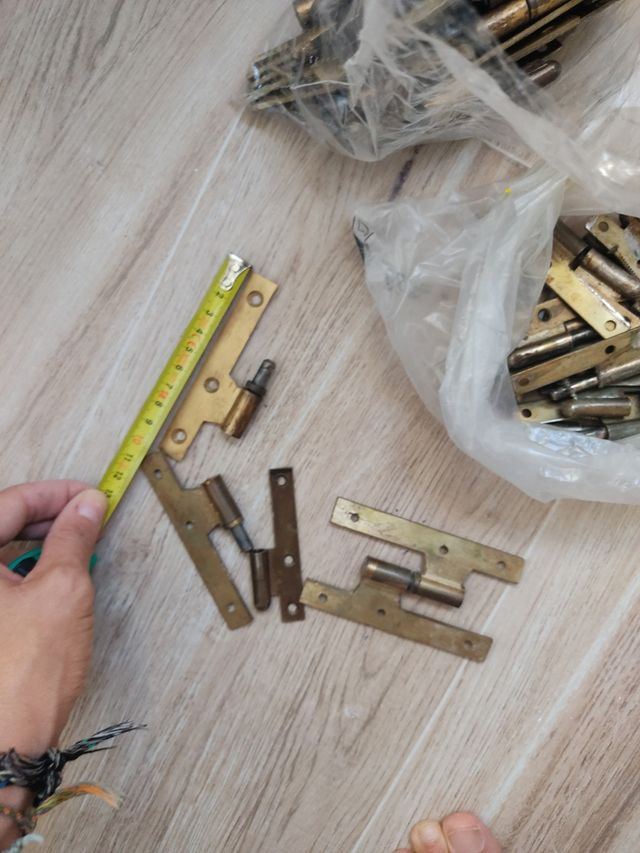Detalles del productoConjunto de 11 bisagras o pernios para puertas, fabricadas en latón.