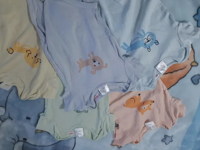 Detalles del productoConjunto de bodies de manga corta para bebé, talla 74 cm. Incluye varios bodies con divertidos estampados de animales.