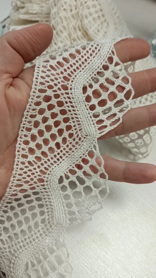 6m encaje de bolillos mecánico de algodón 3m blanco x 3€ 3m blanco roto x 2,40€ 5,40€ PRECIO CON IVA INCLUIDO Y PAQUETE CON COPIA DE FACTURA INCORPORADA