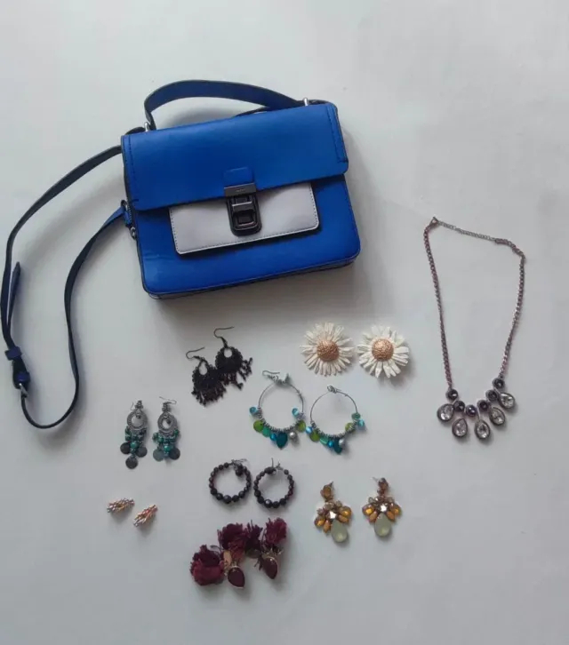 Lote bolso azul y accesorios