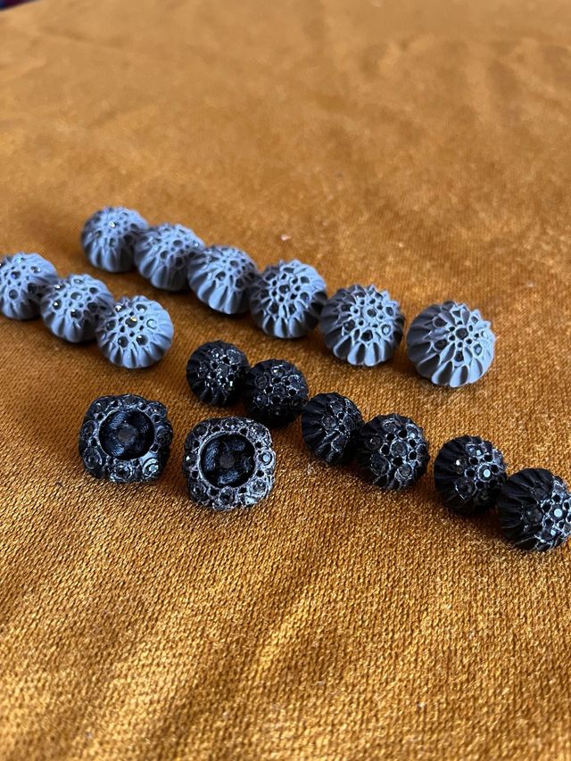 Detalles del productoConjunto de botones antiguos con un diseño intrincado y detallado con pequeñas incrustaciones de cristal