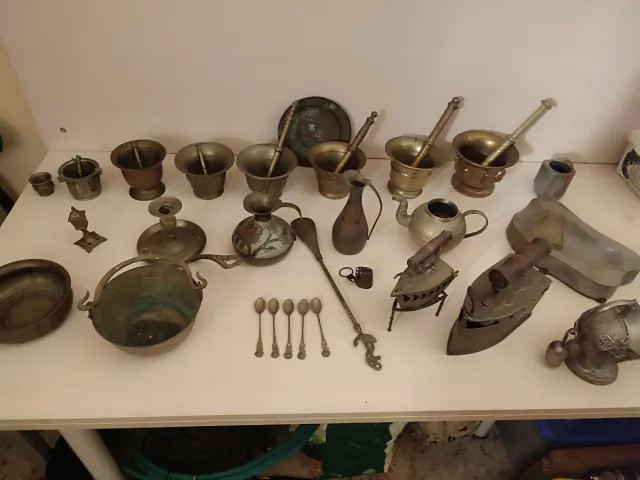 - Variedad de objetos de bronce con acabados detallados.
