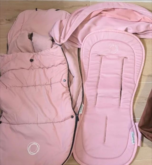 Conjunto de accesorios para cochecito Bugaboo en color rosa. - Saco de invierno acolchado. - Colchoneta transpirable. - Capota extensible.