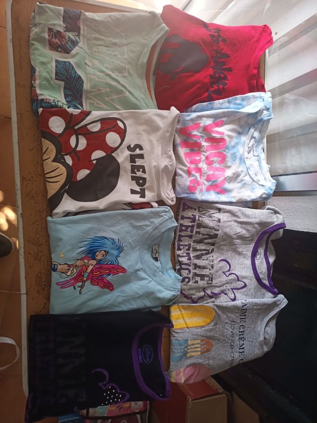 lote de 8 camisetas manga corta y una manga larga para niña 10 a 11 años