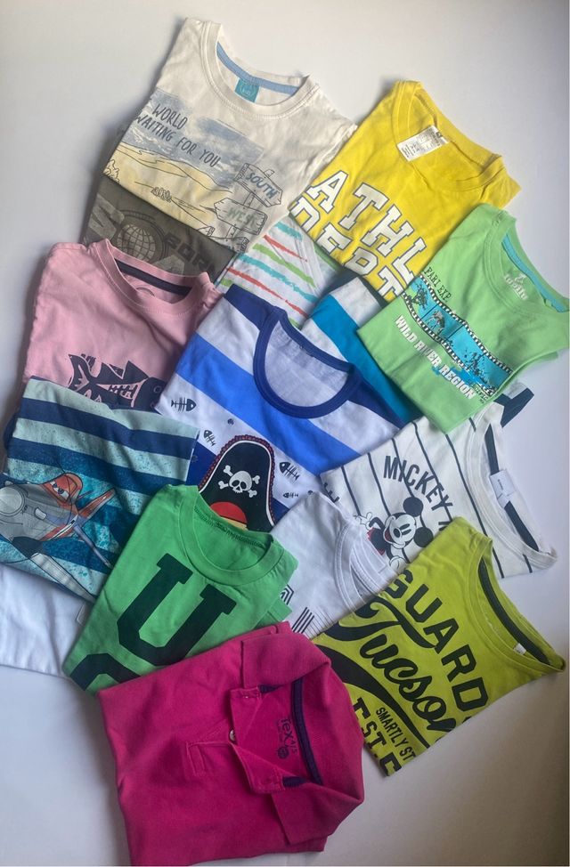 Detalles del productoLote de camisetas para niño o niña. Talla 110 cm. Hay 14 camisetas de manga corta y un polo. Están en buen estado.